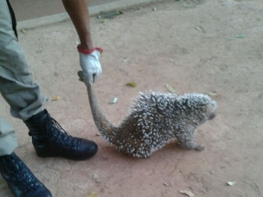 Uma equipe do Corpo de Bombeiros capturou, esta tarde, um porco espinho. O animal estava, desde ontem à tarde, em uma árvore no quintal de uma residência, localizada na rua das Jaqueiras, no bairro Jardim Jacarandás.