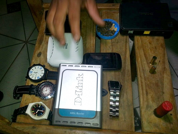 A Polícia Militar apreendeu, ontem à noite, um pé de maconha, “pedras” de pasta base de cocaína e porções de maconha em uma residência, na rua Integração, no bairro São Cristóvão. Alguns relógios de pulso e celulares também foram recolhidos para verificação da procedência.