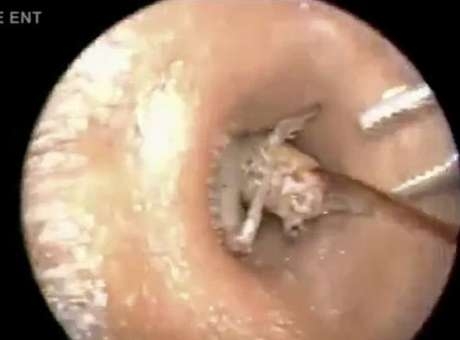 O médico verificou o ouvido do paciente e conseguiu enxergar as patinhas do grilo se mexendo. Assim, utilizou pequenas pinças para puxar o inseto para fora. Quando estava já fora da orelha, o grilo ainda faz um movimento tentando voltar para dentro, mas o médico conseguiu o segurar e garantir que fosse retirado.