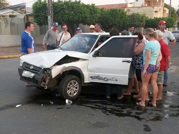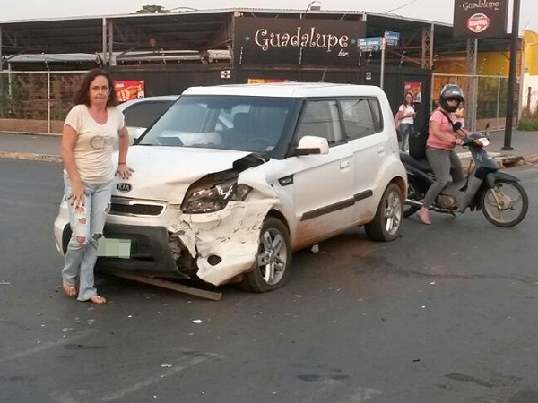 Um Kia Soul e um Fiat Uno, ambos brancos, se envolveram em uma colisão no cruzamento entre as ruas dos Lírios e Caviúnas, na área central, na tarde de hoje (08). O segundo veículo era conduzido por uma mulher que teve escoriações nas pernas e no rosto. Uma criança estava no banco de trás, mas não se feriu. A condutora do outro veículo teve escoriações leves nas pernas.