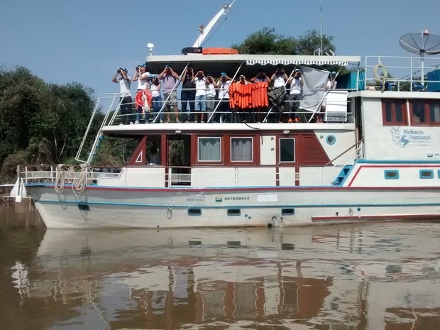 Estudantes observam animais do Pantanal a bordo de chalana em MT Observação visa conscientizar crianças para preservação do meio ambiente. Passeio no Rio Paraguai mostra fauna e flora a alunos de escolas públicas.