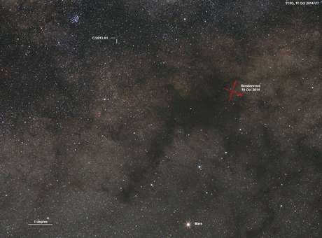 Enquanto isso, em solo marciano, as sondas Curiosity e Opportunity apontarão suas câmeras para o céu avermelhado e enviarão à Terra fotos da passagem do cometa, que devem chegar nas próximas semanas ou meses.