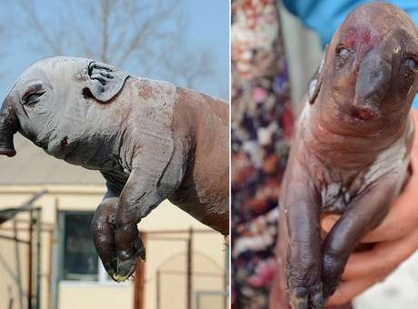 Um porco nasceu com uma espécie de 'tromba' na China e causou um choque nos fazendeiros, donos do animal. A aparência do porco parecia uma mistura com elefante e, infelizmente, não teve um final feliz: por não possuir boca, o pequeno porco morreu duas horas depois de nascer. As informações são do The Mirror.