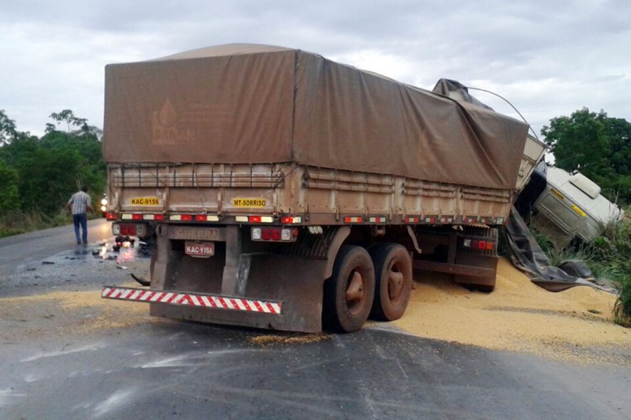 Uma colisão entre duas carretas na BR-364, na saída para Rondonópolis, resultou na explosão de uma delas e na morte de um motorista carbonizado. O acidente ocorreu ontem de manhã próximo a Estância Taj Mahal, já perto do posto fiscal Flávio Gomes. As chamas foram tão fortes que dois carros do Corpo de Bombeiros entraram em ação para tentar dominá-las. A retirada dos destroços originou um engarrafamento de 50 km de cada lado da pista, segundo a Polícia Rodoviária Federal.