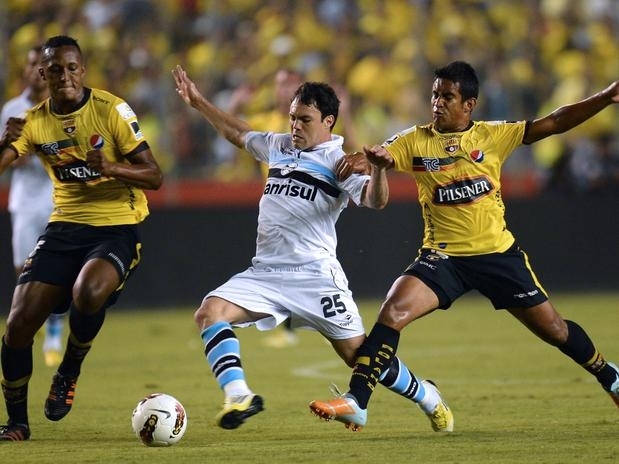Os equatorianos voltaram a assustar o Grêmio aos 36min, em chute de fora da área de Oyola. O placar só não foi aberto no lance graças a uma defesa espetacular de Marcelo Grohe. Mesmo com o adversário melhor na partida, quem abriu o placar foi o Grêmio, aos 44min do primeito tempo. O meia Elano cobrou falta na área e Werley colocou a cabeça para mandar para o fundo das redes.