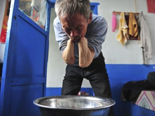 Um agricultor chinês construiu, com a ajuda de dois sobrinhos, próteses para o lugar de suas mãos. O objeto é feito a partir de sucata de metal, plástico e borracha, e o possibilita a exercer atividades básicas cotidianas.