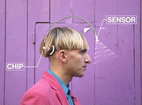 A antena capta frequência de cores e envia dados para um chip na cabeça de Harbisson. Harbisson identifica cada cor através de uma nota musical diferente - inclusive aquelas que ele não consegue ver.