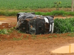 Uma Toyota Hilux preta, placas de Ubiratã (PR), ficou destruída após capotar na BR-163, a cerca de dez quilômetros de Nova Mutum sentido Posto Gil, esta madrugada. A caminhonete foi levada, ontem à noite, em um assalto em uma residência, localizada na rua Goiânia, no bairro Alvorada.
