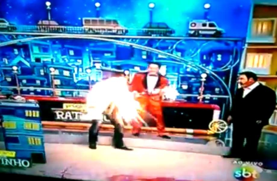 O apresentador Luis Ricardo levou um grande susto ao vivo na TV na noite da última terça-feira (9). Em quadro do Programa do Ratinho, no SBT, ele fez um número de pirofagia e acabou se queimando. Assim que ele assoprou o líquido nas chamas, o fogo se espalhou pelo rosto do apresentador. Ele se desesperou, abandonou os intrumentos com labaredas no chão e deixou o palco correndo. Neste momento, funcionários entraram no cenário com extintores de incêndio para conter o fogo.