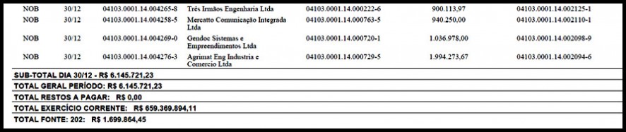 A Gendoc teve estornado o valor de R$ 1.036,978,00, cujo pagamento também foi autorizado por Silval Barbosa em 30 de dezembro, último dia útil de seu governo.