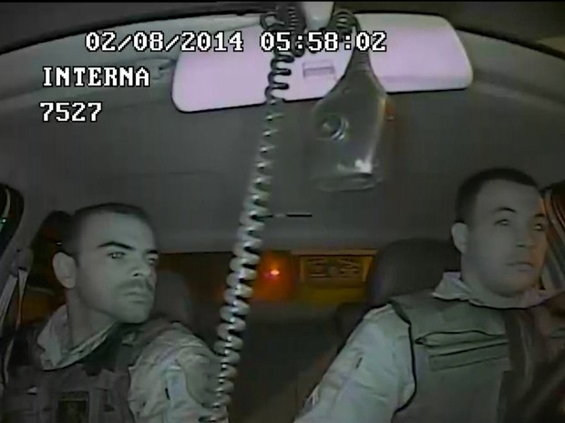 Ao relatar o que ocorreu, o policial ainda admite: “Dá um auxílio aqui também que a gente tá meio barata voa”. O relógio da câmera da viatura policial mostra que eram quase 6h do dia 2 de agosto do ano passado.
