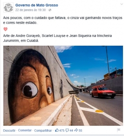 A artista também ressalta que tentou explicar que estavam desenhando um grafite e mostrou no celular que este tipo de arte era apoiada até mesmo pelo governador Pedro Taques (PDT). Entretanto, não teve sucesso. "Disseram em alto tom de voz que ‘não interessava’ o que o Governo disse e que precisávamos de uma autorização especial da prefeitura da Capital para fazer qualquer tipo de grafite na obra. Durante o caminho passamos pela Trincheira Jurumirim, onde se encontram os desenhos divulgados pela página do Governo no Facebook. Neste momento, apontei para os policiais e disse que a arte explanada pela gestão se tratavam daquelas. Nesse momento, um dos agentes começou a gritar comigo, me chamando de ‘noiada", relatou.