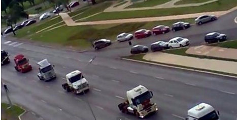 Os 50 caminhoneiros acampados no estacionamento do Estádio Nacional Mané Garrincha, na região central de Brasília, fizeram, no fim da tarde desta quarta-feira (4), carreata em direção à Esplanada dos Ministérios.