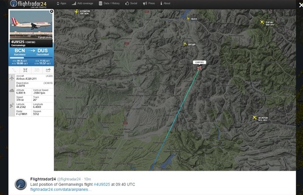 - A aeronave desapareceu dos radares por volta das 11h locais (7h de Brasília) nos Alpes franceses;