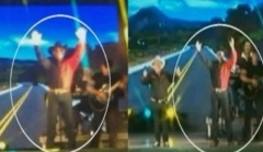 A emoção tomou conta do show principalmente no momento em que apareceu José Rico cantando no telão. Foi também nesse momento em que algo muito estranho aconteceu. Uma imagem mostra que o dançarino da direita não parece usar nada no rosto.