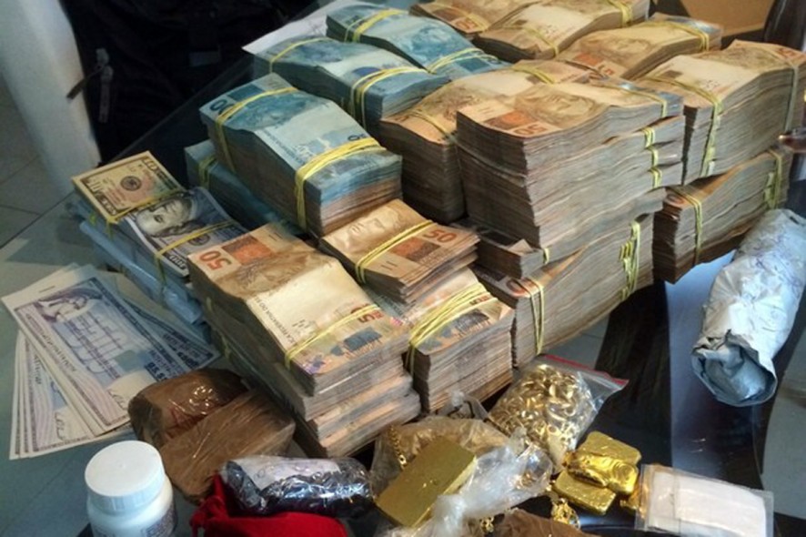 Além de 14 barras de ouro, a PF apreendeu meio milhão de reais na casa do doleiro