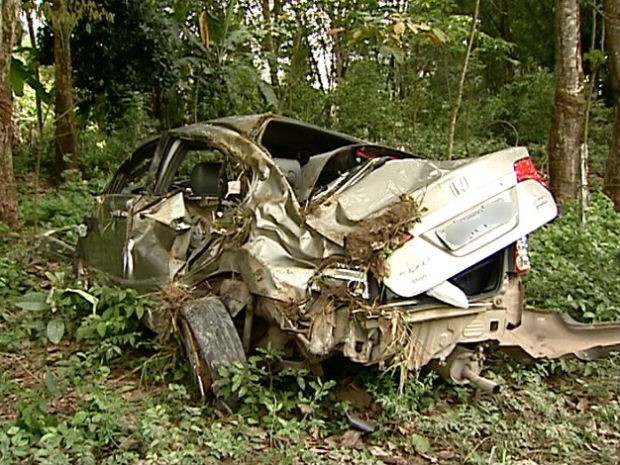 Carro em que a ginasta Eduarda Queiroz seguia ficou destruído (Foto: Carlos Palito/TV Gazeta)