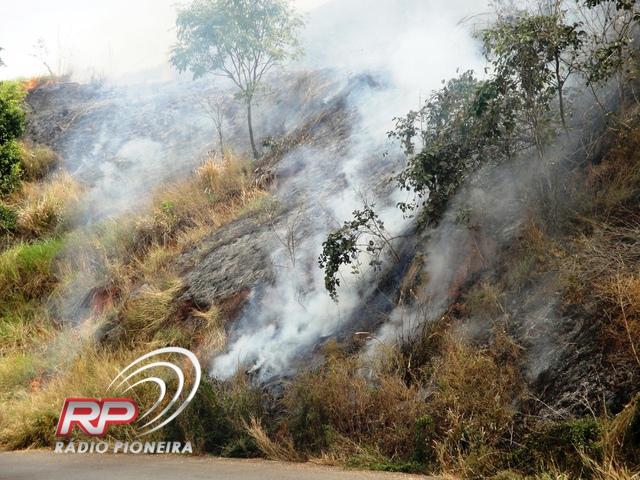 Em trecho expressivo do entorno da rodovia MT 480 na região da Serra de Deciolândia a vegetação era consumida pelas chamas.