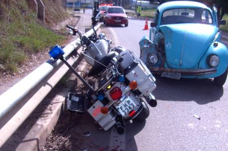Falso PM bate moto em Fusca e é desmascarado Em motocicleta com sirene, capacete e jaqueta, comerciante se passava por tenente da Rocam