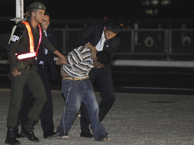 Durante a abordagem dos seguranças, a mulher, que declarou apaixonado pela presidente. "Eu queria sequestrar ela, ela é meu coração" (Foto: Fabio Rodrigues Pozzebom/Agência Brasil)