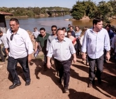 Acompanham o governador na visita aos municípios do Vale do Araguaia os secretários Eduardo Chiletto, de Cidades; Permínio Pinto, de Educação; do Gabinete de Desenvolvimento Regional, Eduardo Moura; adjunta de Articulação Política da Casa Civil, Paola Reis; adjunto de Turismo, Luis Carlos Nigro; deputados estaduais Baiano Filho e Max Rusi, e prefeitos da região.