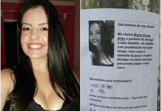 Em maio de 2015, cartazes relacionando a jovem com prostituição foram colados nos postes da região de Pinheiros, zona oeste da capital, onde fica a empresa em que Bruna trabalha. Os números dos celulares dela e da empresa foram colocados nos cartazes