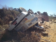 Carreta carregada de milho tomba na serra do Culuene