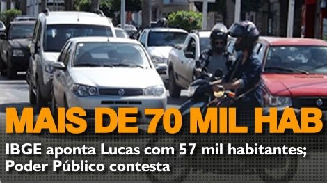 Estimativa do Instituto Brasileiro de Geografia e Estatística –IBGE- divulgada na última semana aponta queLucas do Rio Verde conta com uma população de 57.285 habitantes. Porém, o Poder Público contesta os indicadores, levando em consideração alguns dados referentes aos atendimentos na área de saúde, ou até mesmo, o número de ligações de agua existentes no município.