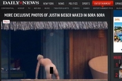 O site "Daily News" publicou, nesta quarta-feira, fotos do cantor Justin Bieber completamente nu durante suas férias com a namorada, Jayde Pierce, em Bora Bora. Nas imagens, feitas na terça-feira, o cantor aparece peladão na varanda do local onde está hospedado.