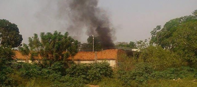 Pelo lado de fora podemos ver fumaça onde alguns colchões foram incendiados.