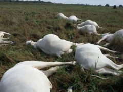 O proprietário de um sítio localizado a quatro quilômetros da cidade de Cláudia teve um prejuízo de R$ 20 mil, após um raio ter matado 11 cabeças de gado da raça Nelore.