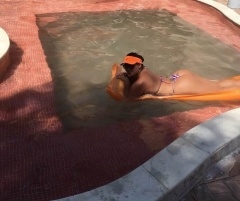 Andressa Soares, aMulher Melancia, aproveitou o sol que fez nesta quinta-feira, 7, para botar a marquinha debiquíniem dia. A funkeira colocou um modelo fio-dental e foi para a piscina de sua casa, no Rio de Janeiro, se bronzear