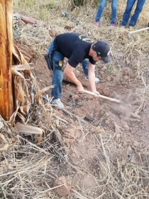 Após quase quatros horas de buscas, realizando trabalho manual com picareta e enxada, os policiais civis da DHPP conseguiram localizar o corpo da jovem, em uma profunda cova, na chácara do namorado.