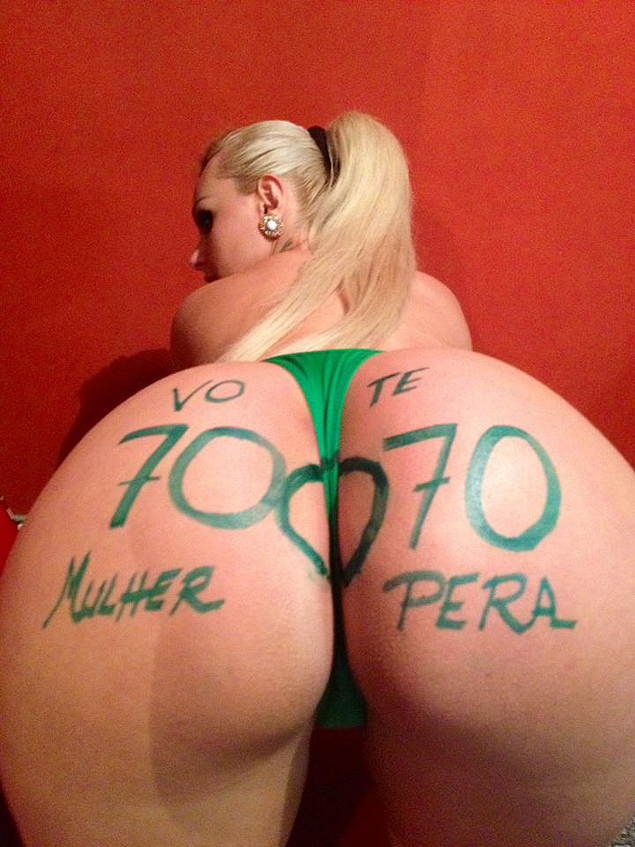 Em texto publicado junto com a imagem, Pêra descreve suas propostas de campanha e explica: "sou guerreira, funkeira, e mulher de marketing. Assim sendo, fiz essa foto apenas para chamar a atenção e marcar o meu número (…), sem a ideia de me vulgarizar”.