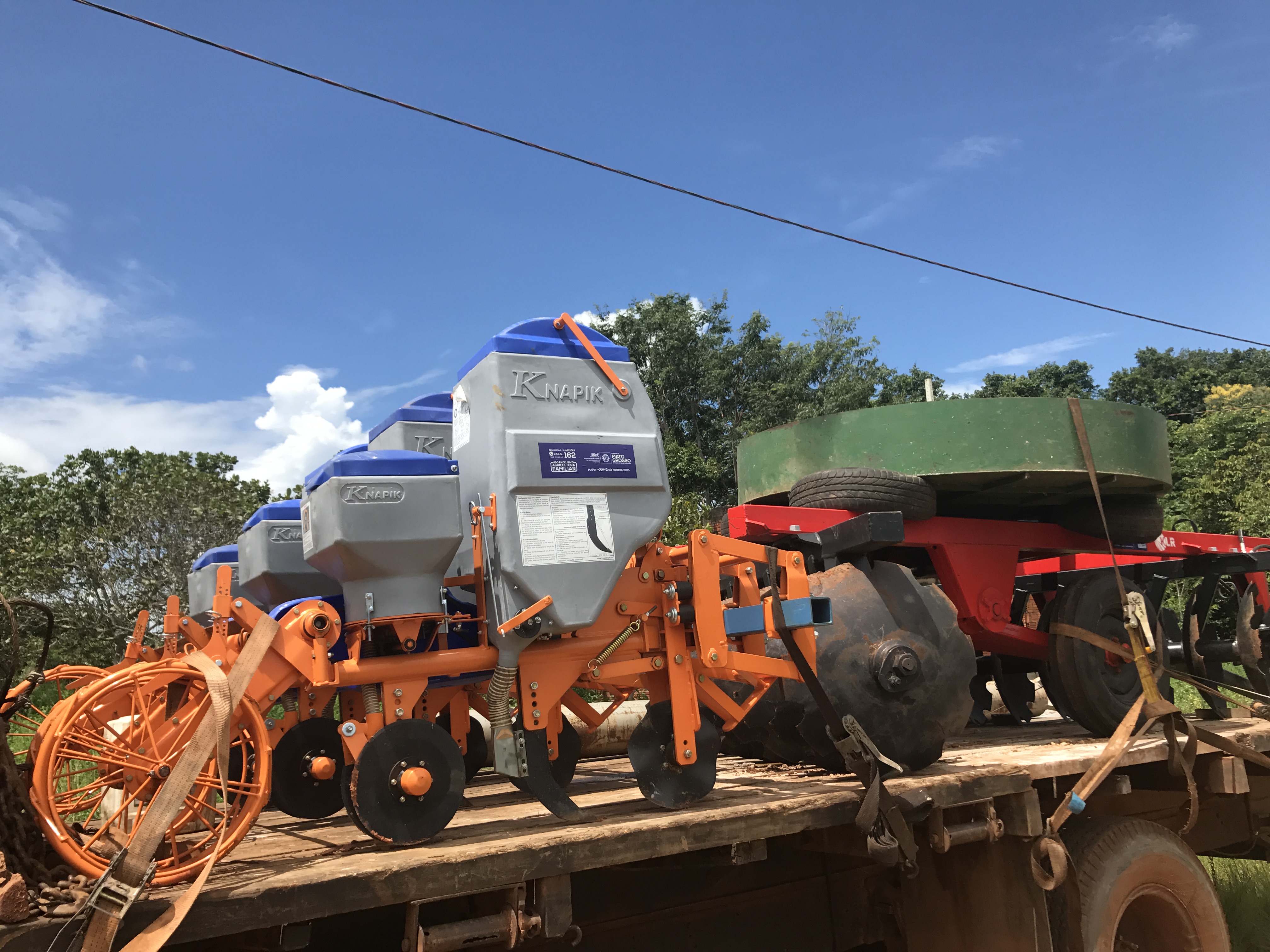 Foram entregues um trator agrícola, plantadeira, grade aradora e os equipamentos para farinheiro que compreendem forno rotativo, ralador de mandioca, peneira elétrica, prensa para massa, conjunto desintegrador picador e moedor, balança mecânica de plataforma, lavadora de mandioca e chaminé em chapa galvanizada com 04 metros.