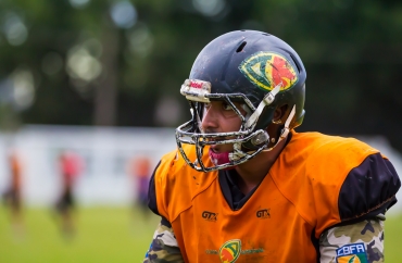 “Os maiores caras do jogo são os homens da linha. São brutamontes mother fuckers de pelo menos 1,90m de altura e 130 quilos. Principalmente nose tackles e defensive tackles. Já os defensives ends, que são os caras das pontas da linha, podem ser um pouco menores, mas precisam compensar com velocidade. E esse é o caso do Jadson. Ele tem velocidade, agilidade e conhece a posição e o funcionamento da defesa. Ele nos levará para outro nível”, diz Joshen.