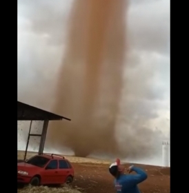 Nos vídeos feito por Waldemar, é possível ver a altura do redemoinho, que impressionou os moradores locais.