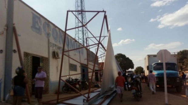 Uma estrutura de metal que estava sendo montada no Supermercado Econômico desabou em cima dos homens que estava trabalhando no local, na tarde desta quarta-feira (23/08), por volta das 13h30min.