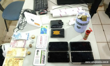 Segundo a Polícia, com os suspeitos foram encontrados alguns entorpecentes, bem como celulares de produtos de furto.