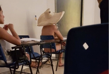 O rapaz teria ficado 20 minutos peladão na sala de aula. Como ninguém se manifestou, o jovem saiu e voltou já vestido com uma camiseta e uma saia, mesmas peças com as quais havia chegado para assistir à aula.
