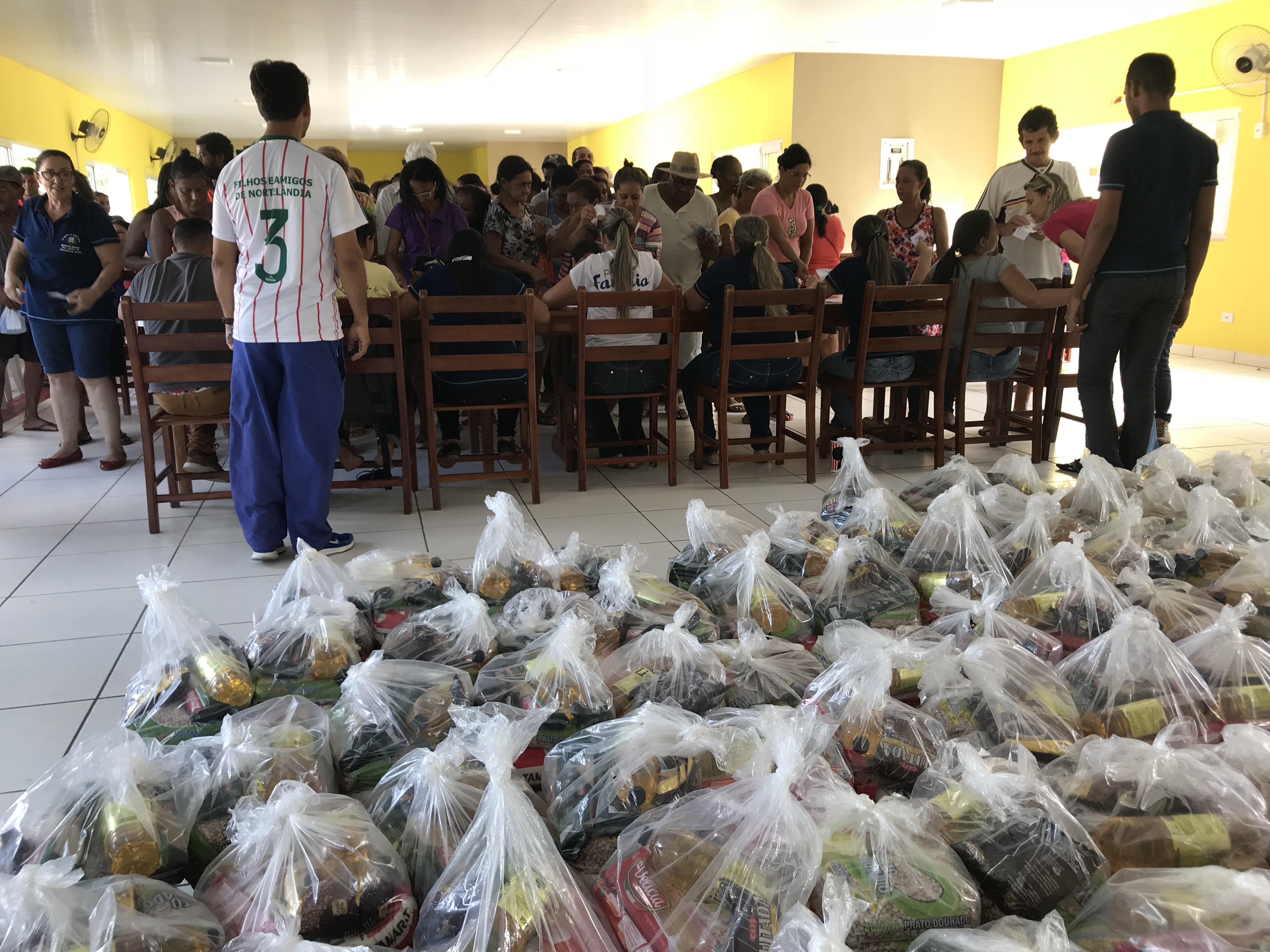 A Secretaria Municipal de Assistência Social da Prefeitura Municipal de Nortelândia realizou na tarde desta quarta-feira (20.12), no auditório do Centro de Convivência dos Idosos “Flaviano Corrêa de Morais”, a entrega de 160 cestas básicas as famílias carentes do município.