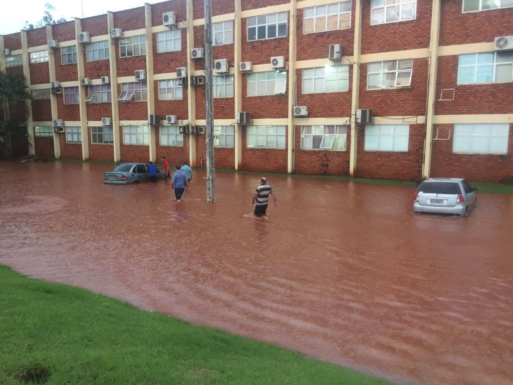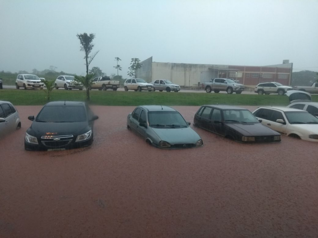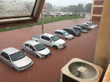 Duas e avenidas de Tangará da Serra, a 242 km de Cuiabá, ficaram completamente alagadas na tarde desta segunda-feira (26), após uma forte chuva que caiu no município.