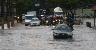 Há vários pontos de alagamentos, como em cruzamentos, avenidas com estabelecimentos comerciais, e, inclusive, uma lagoa localizada na região central chegou ao mesmo nível das ruas.