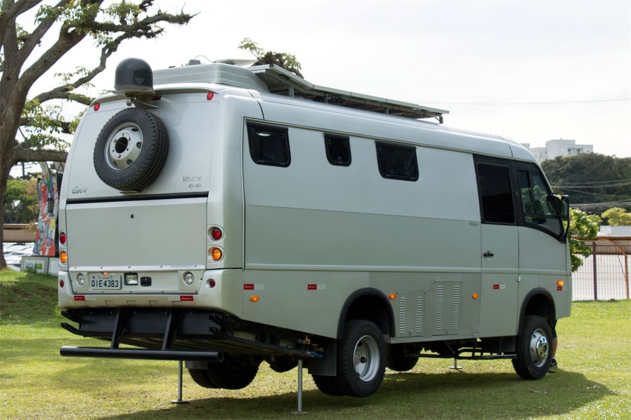 A fabricante brasileira Volare, em parceria com a Abreu & Abreu Engenharia, aproveitou o bom espaço garantido pelo micro-ônibus V8L 4X4 e desenvolveu um motorhome cujo torque é distribuído nos dois eixos. O sistema de tração permite que o “apartamento” móvel possa se destacar, sobretudo, em trilhas e trajetos off-road.