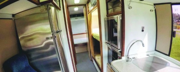 O visual é bem clássico, mas há espaço suficiente para garantir conforto, entretenimento e até algumas tarefas domésticas dentro do motorhome. Toda a estrutura interna do automóvel, de acordo com a marca brasileira, foi construída em compensado naval, aço inox e policarbonato.