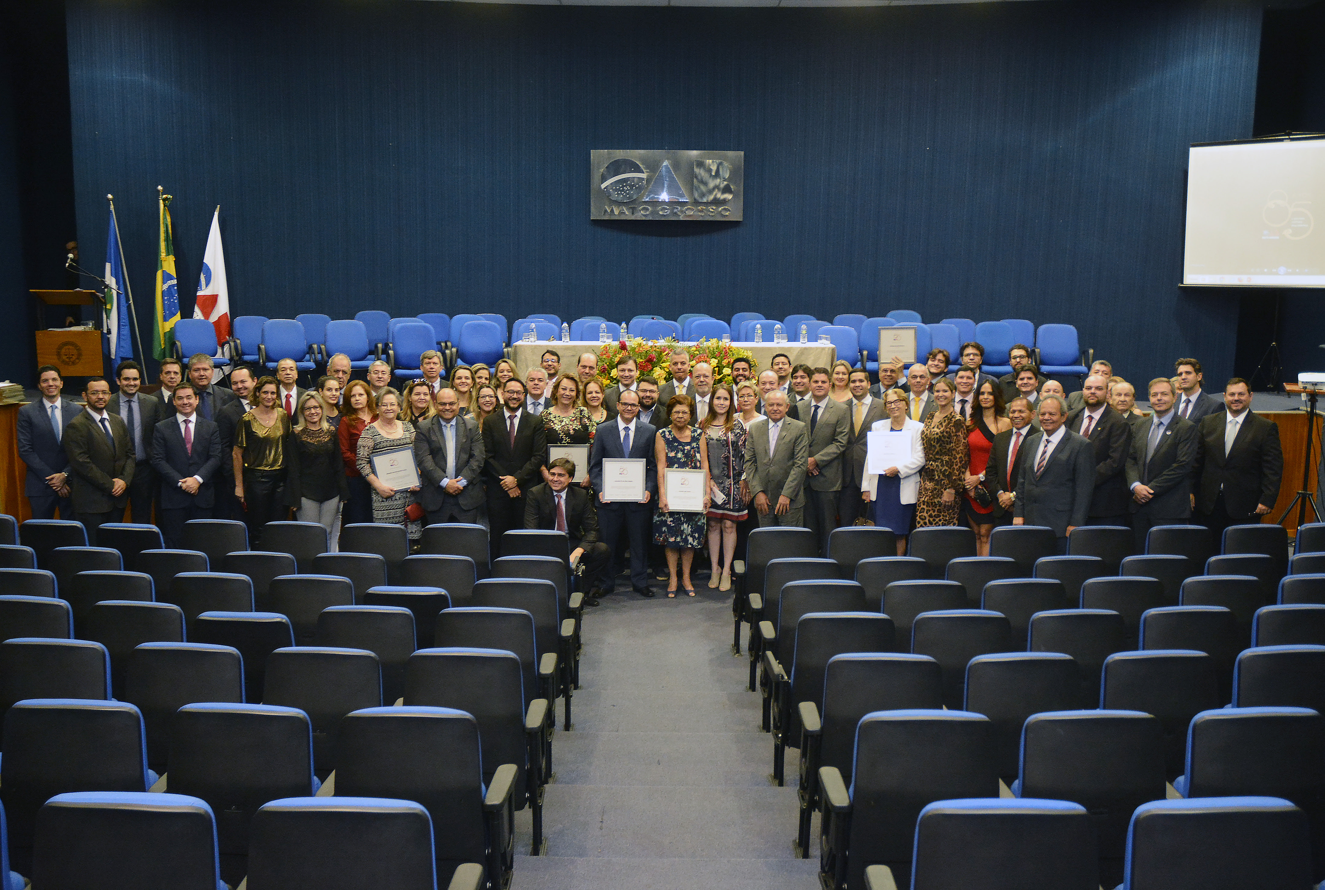 Membros honorários vitalícios, presencialmente ou representados por seus familiares, prestigiaram, na manhã desta sexta-feira (29), a solenidade que marcou o aniversário de 85 anos da Ordem dos Advogados do Brasil – Seccional Mato Grosso (OAB-MT). Ovacionada por todos os presentes como a mais importante instituição defensora da sociedade civil organizada no Estado, a OAB-MT foi homenageada por sua atuação político-sociocultural ao longo de mais de oito décadas.