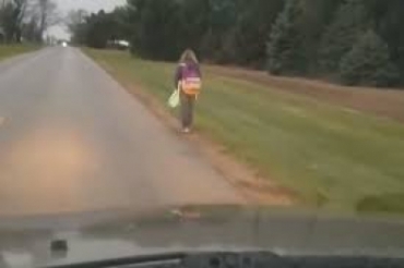 As imagens foram feitas por um motorista e mostram uma menina andando no acostamento da estrada com uma mochila nas costas.