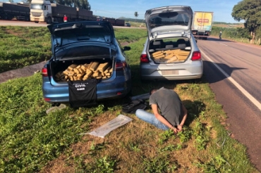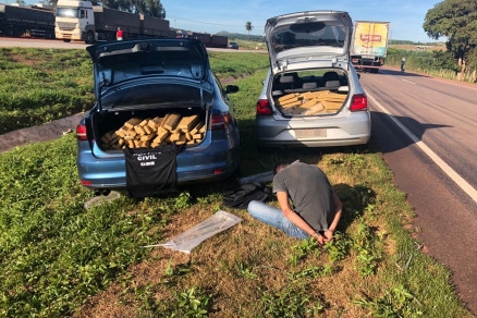 Toda a droga foi recolhida da pista e do Ecosport e colocada no Jetta e no Gol da Polícia Civil, antes de ser encaminhada para a delegacia.