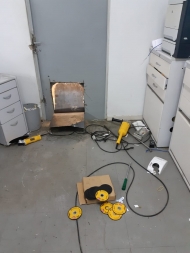 Com isso, os policiais fizeram uma aproximação do banco, localizando alguns materiais de corte e um bloqueador de sinal. Após a chegada de mais uma equipe de Força Tática, foi feito o adentramento no local, não sendo localizado nenhum suspeito e verificado que os mesmos tinham conseguido cortar a porta que dava acesso ao cofre.