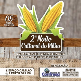Acontecerá nesta sexta-feira, 05 de abril, a Segunda Noite Cultural do Milho.